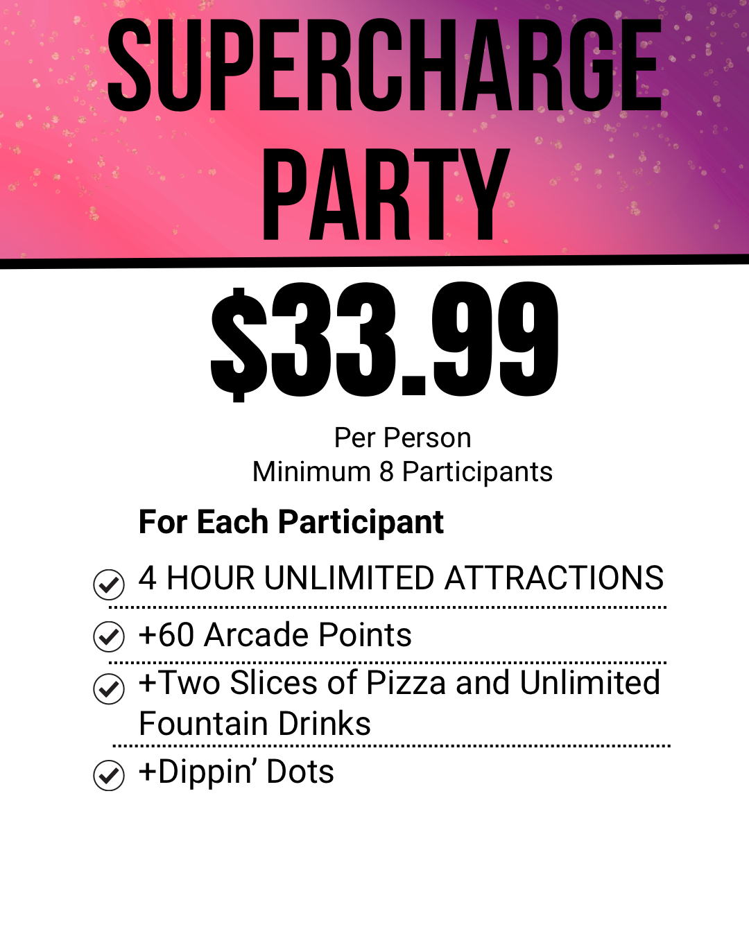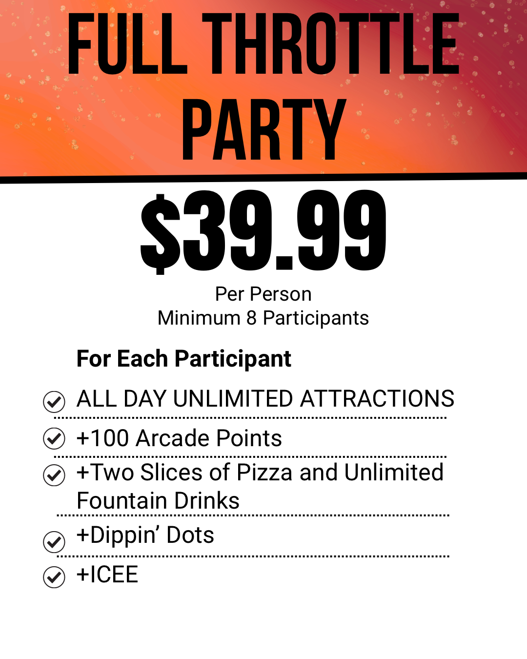You’re free to start your attractions anytime on the day of the party, but we suggest starting before your table time. Oh, and don’t forget to order your food at check-in!