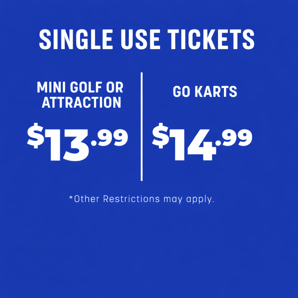 GO KARTS - MINI GOLF - ARCADE - LASER TAG - ROCK WALL - BUMPER BOATS